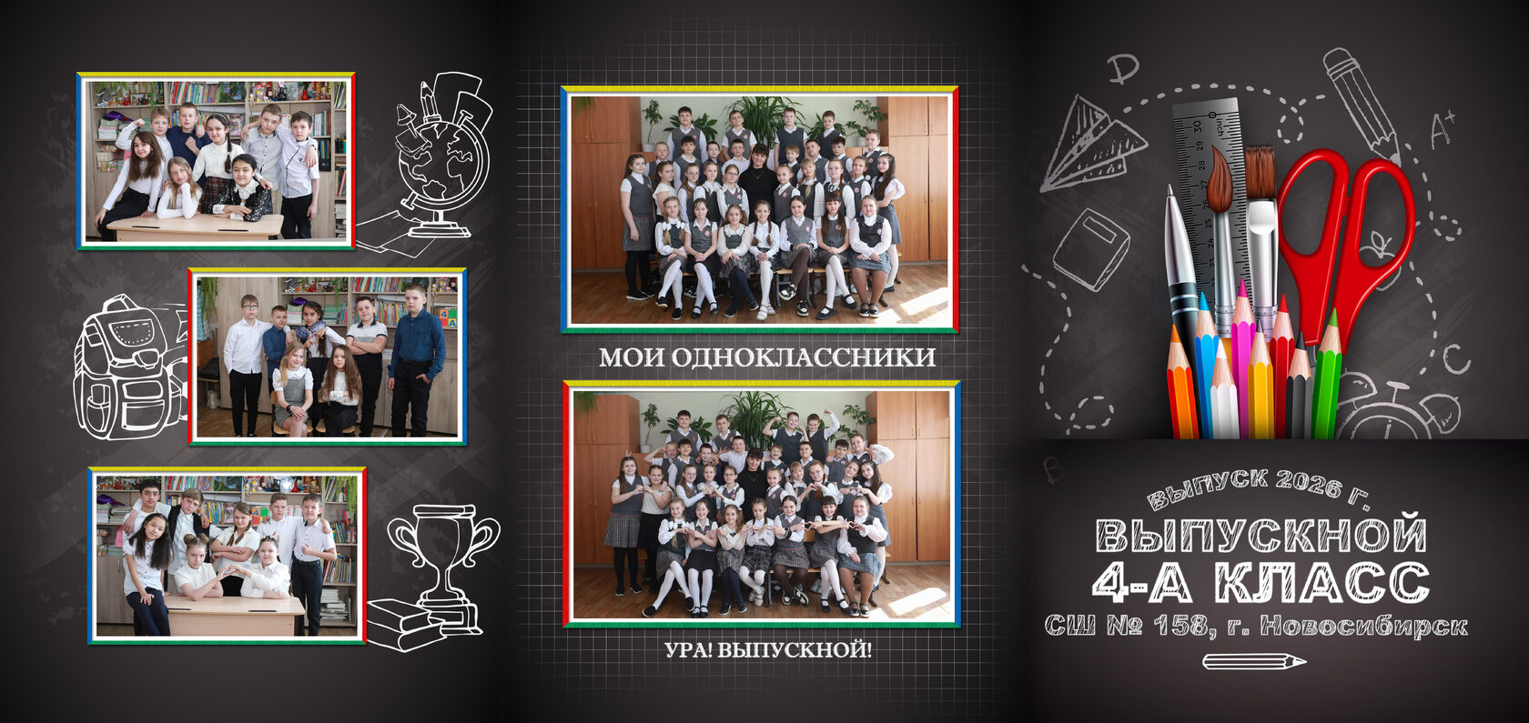Для исключения возможных ошибок в подписях (населенный пункт, школа, класс, фамилии и имена) и неудовлетворительного результата перед печатью все развороты высылаются на ознакомление и согласование. После согласования ответственность за ошибки несут родители или классный руководитель, одобривший проект в печать.
