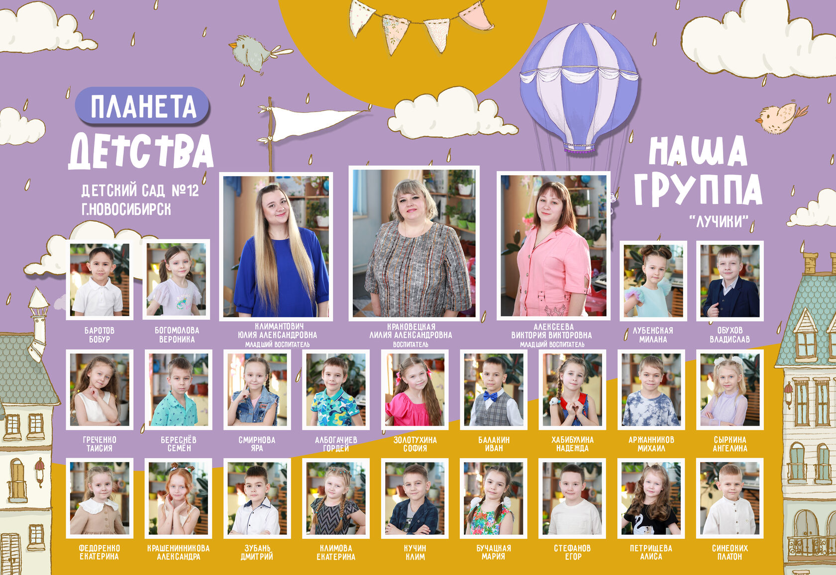 Для исключения возможных ошибок в подписях (населенный пункт, сад, группа, фамилии и имена) и неудовлетворительного результата, перед печатью фото высылается на ознакомление и согласование. После согласования ответственность за ошибки несут родители или воспитатель, одобривший проект в печать.